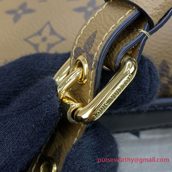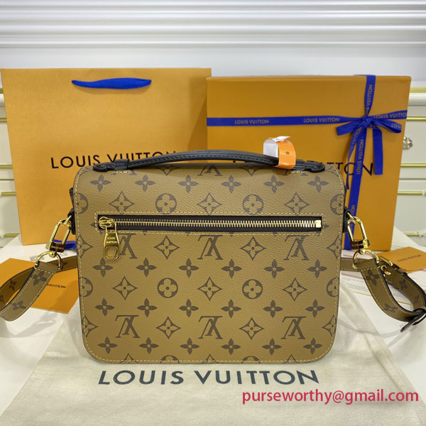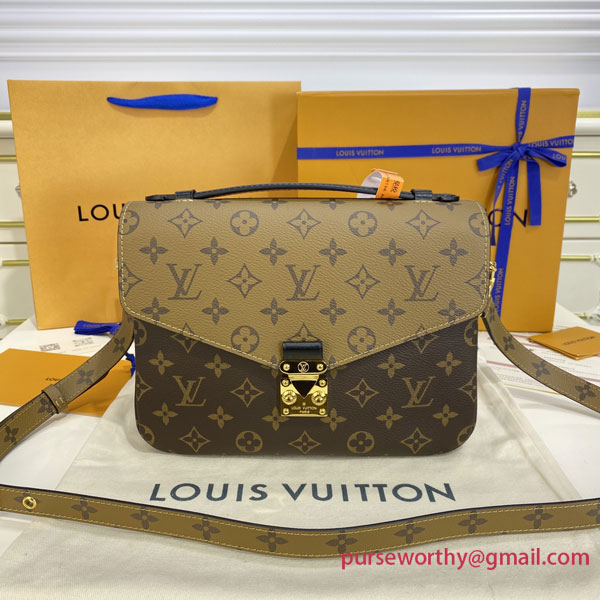 With its distinctive satchel silhouette, the Pochette Métis bag has become an object of fashion desire. This compact, go-everywhere model in trendy Monogram Reverse canvas features a signature S-lock closure with a gleaming gold-tone finish. Versatile and surprisingly roomy, it is fitted with a chic top handle and a long removable strap for shoulder or cross-body wear.