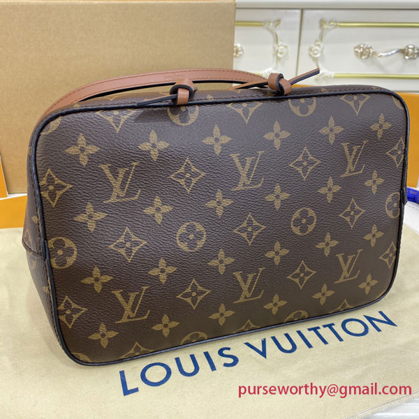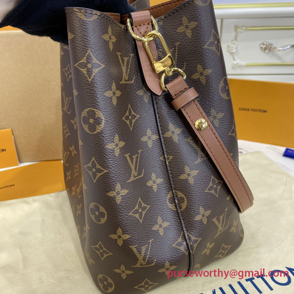 A true House icon, the NéoNoé bucket bag revisits a 1932 design by Gaston-Louis Vuitton. The original was created to transport bottles of Champagne in style; this modern version in Monogram canvas features a sleek shape, colorful leather trim and a matching bonded lining. The adjustable smart strap can be slung over the shoulder or lengthened for a trendy cross-body carry.