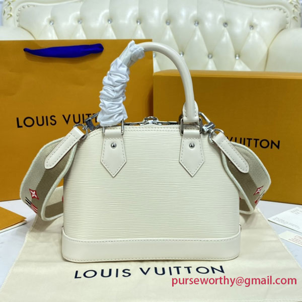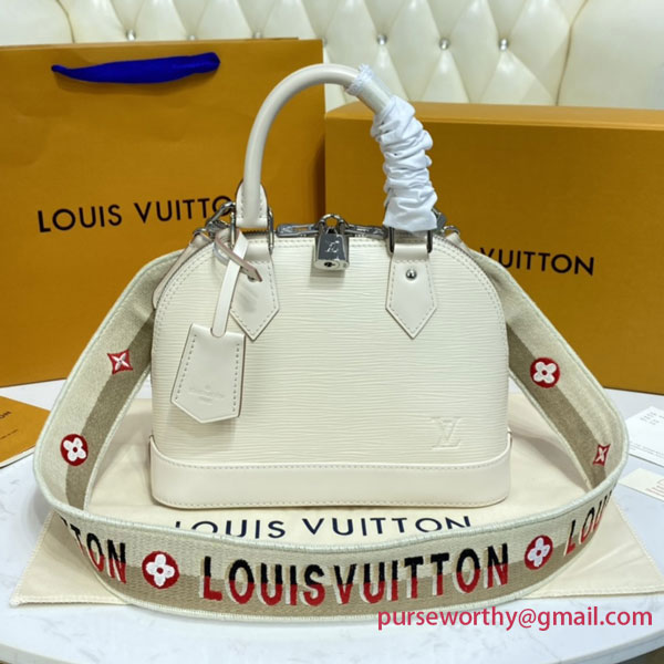 One of the House’s most recognizable bags, the adorable Alma BB handbag gets a sporty makeover thanks to a new Jacquard strap. The fashionably wide strap is embroidered with Louis Vuitton on one side and Monogram Blossoms on the other, and features delicate stitching along its edges. Made from colorful Epi leather, this bag will definitely turn heads.