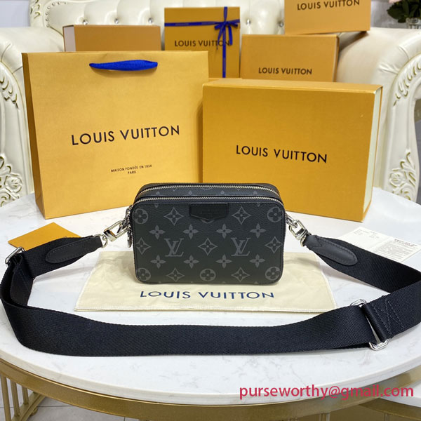 This Alpha Wearable Wallet is a versatile model that can be carried in different ways, thanks to its adjustable and removable strap. Made from Monogram Eclipse coated canvas, it’s trimmed in black leather. Its wide opening and side gussets give easy access to belongings inside. Perfect for carrying a phone (or two) and a wallet.