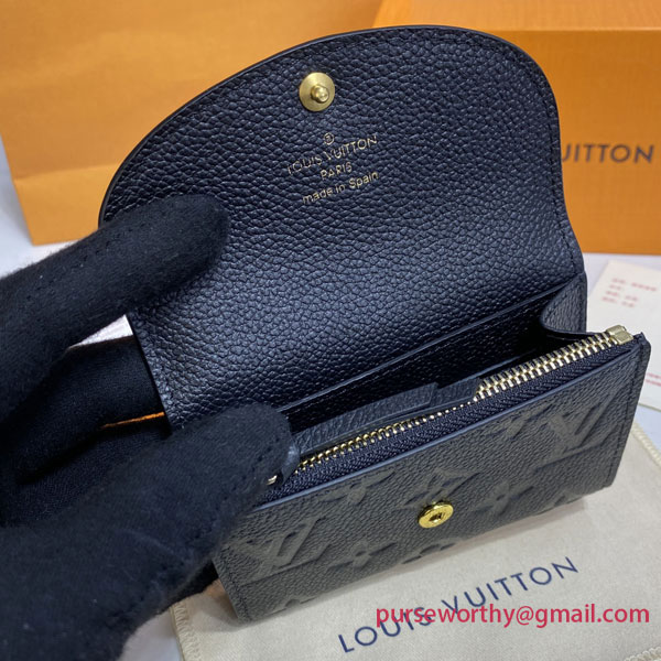 The Rosalie coin purse is crafted from supple, grained Monogram Empreinte leather, which is embossed with the iconic Monogram pattern. This tiny, feminine purse features a rounded flap secured by a gold-tone, Louis Vuitton-engraved press-stud. As well as a zipped pocket for coins, it offers a flat pocket and two card slots.