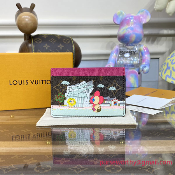 For the Vivienne Holidays 2022 collection, the Card Holder in Monogram canvas features an exclusive print paying tribute to South Korea. It shows Louis Vuitton mascot Vivienne in front of the Seoul boutique, alongside a Sakura tree and a temple. An invitation to travel, this practical and collectible accessory makes a perfect gift.
