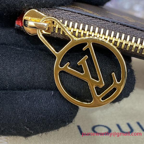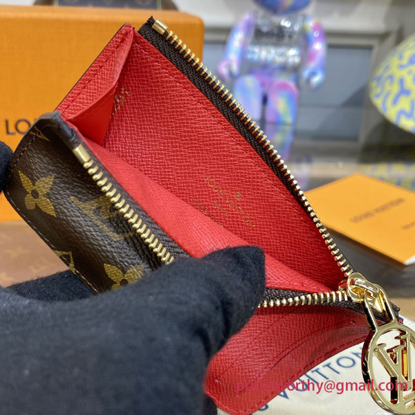 Modern and multifunctional, the Romy Cardholder unites the simplicity of a card case with the utility of a zipped, gusseted pouch that is ideal for holding loose cash, coins or receipts. This new model is meticulously crafted from Monogram canvas, accented with a colorful leather lining and a signature LV Circle zip pull in gold-finish metal.