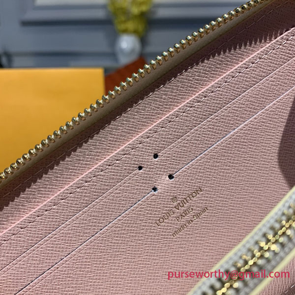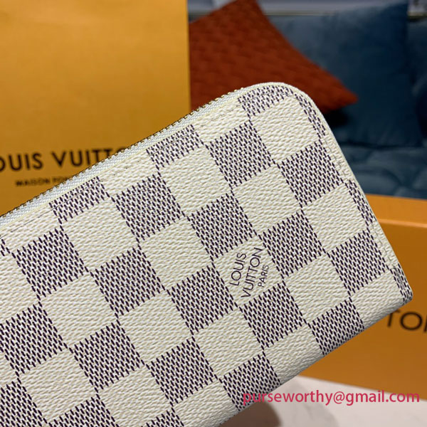 The slim-line Clémence wallet is crafted from Damier Azur canvas with a grained-leather lining. Its all-round zip opens wide to allow easy access to its two generous compartments, complete with pockets and card slots. Refined details, such as the leather zip pull, mean the Clémence can also be used as a clutch.