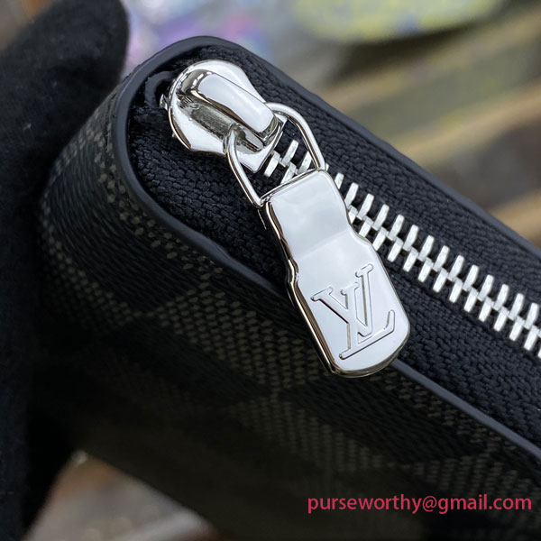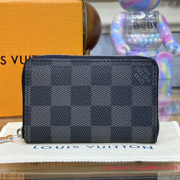 The Zippy is a compact coin purse in masculine Damier Graphite canvas. It features a wide zippered closure, making it ideal for change, credit cards and business cards.