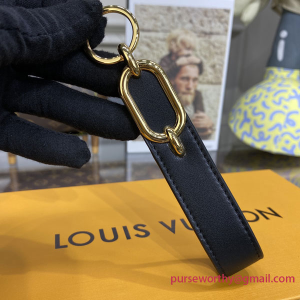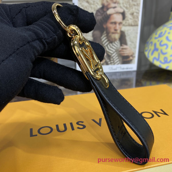 The LV Link Dragonne offers a modern reinterpretation of the iconic LV signature, combining gleaming hardware with smooth leather. It is comprised of an understated strap lined with a contrasting Monogram canvas, showcasing the House's artisanal expertise. The keyring is adorned with an LV Link charm at the top.