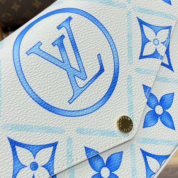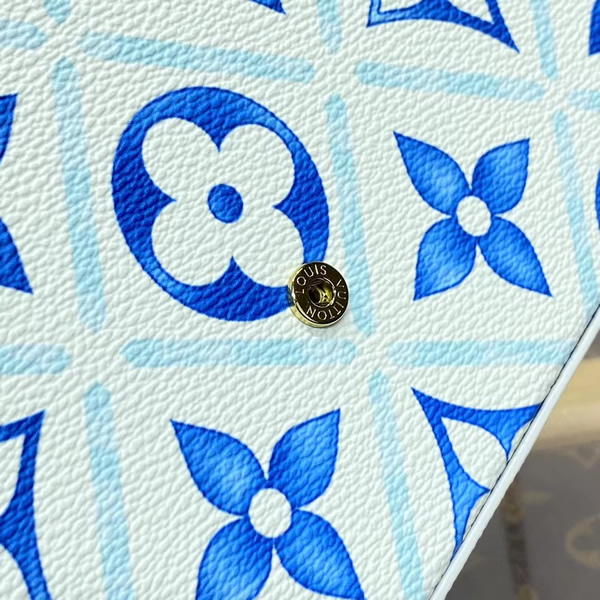 This seasonal edition of the Félicie Pochette is part of the LV By the Pool collection. It comes in coated canvas with a Mediterranean-style Monogram Tiles print and an LV Circle logo. This versatile, envelope-style pouch features two removable pockets and a removable, gold-tone chain, allowing it to double as a clutch.