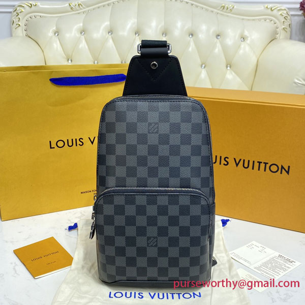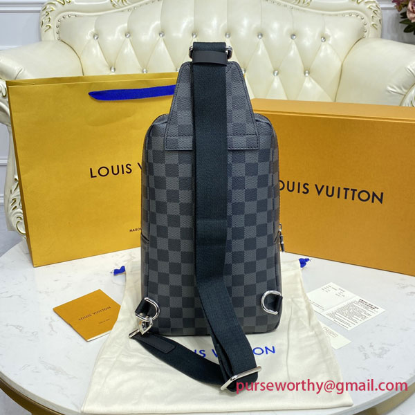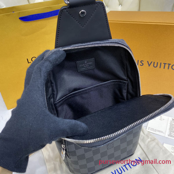 The Avenue Sling Bag in Damier Graphite canvas fits urban lifestyles perfectly: compact and sporty, with a cool and casual attitude. Its “smart” strap adjusts for left- or right-side carry. The body-friendly shape and double zip keep valuables close and secure.