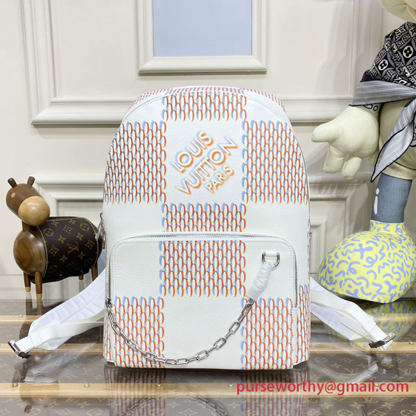 The cool, timeless style of the new Racer backpack is enlivened with the eye-catching Damier Spray look. A street art-inspired version of Louis Vuitton’s classic Damier pattern is printed on fine cowhide, accented with a chain – one of designer Virgil Abloh’s signatures. With multiple pockets and secure zipped closures, it’s a versatile backpack with a young, on-trend look.