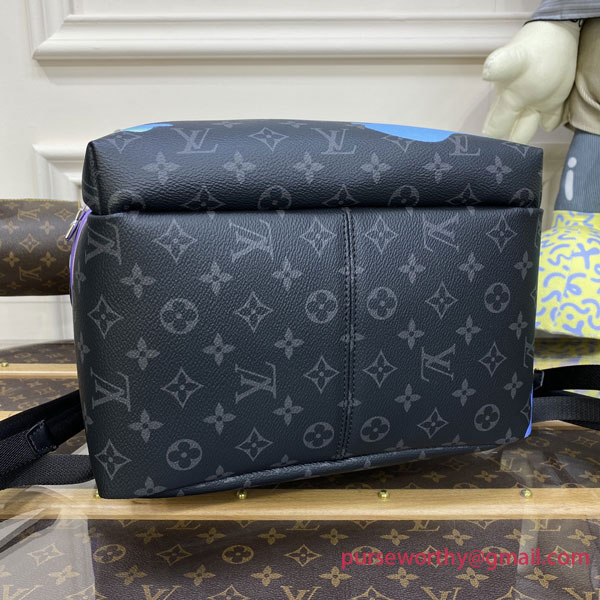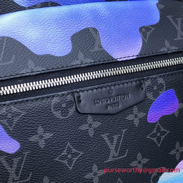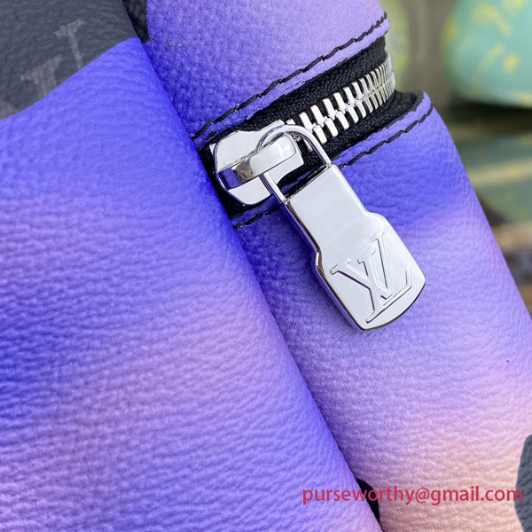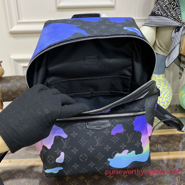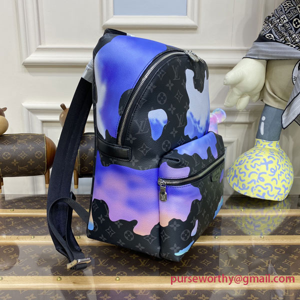 The Discovery backpack takes on a vibrant new look as part of the “Room with a View” capsule collection. Recalling designer Virgil Abloh’s fascination with clouds, Monogram Eclipse canvas is decorated with a peaceful sunrise in fresh shades of blue and violet, with LV-shaped clouds for a subtle signature. A practical carry-all, it even has a special iPad pocket.