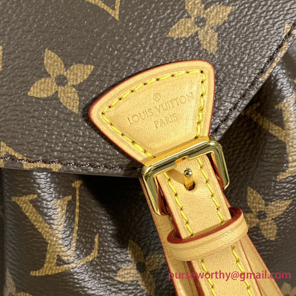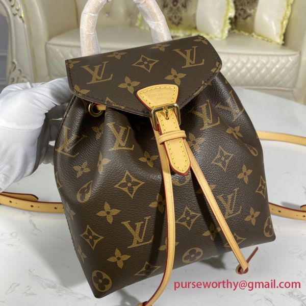 Louis Vuitton introduces the Montsouris BB Backpack in classic Monogram canvas and black cowhide leather for Winter 2020. This compact backpack is inspired by the original Montsouris from 1994, as can be seen in its gold-color buckle and leather drawstring, but its lines have been modernized. A top handle and removable adjustable leather straps allow multiple carry options.