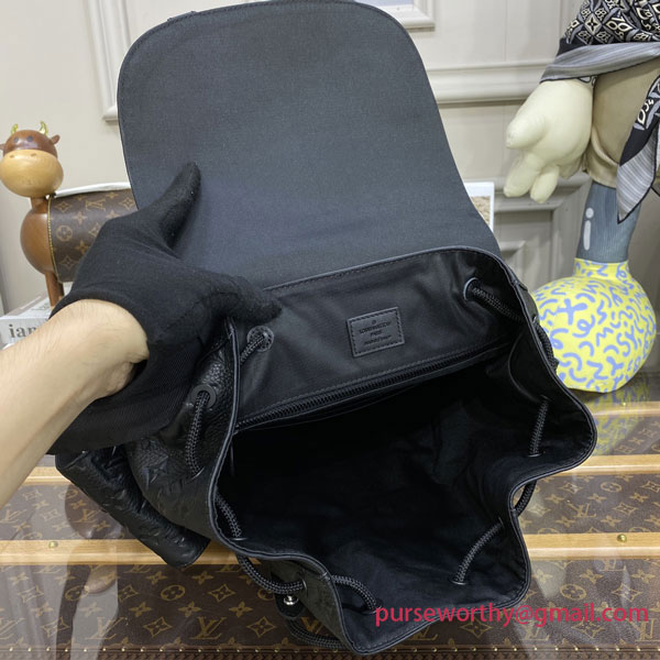 The Christopher MM backpack is a mid-sized backpack with two exterior side pockets and numerous functional pockets inside. Fashioned from Taurillon leather with an embossed Monogram motif, it is finished with black leather straps and matte-black hardware. A drawstring and press-stud closure keeps what’s inside secure.