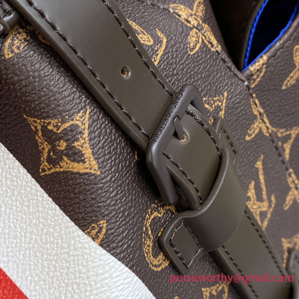 Made from coated canvas, the Christopher MM backpack has a Monogram pattern treated slightly irregularly for a vintage feel while neon touches on the trim and lining bring modernity, all part of Virgil Abloh’s exploration of opposites in the Trunk L’Œil capsule collection.
