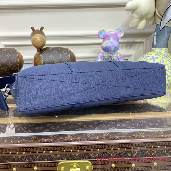 An elegant contemporary alternative to a traditional attaché case, this briefcase is styled in LV Aerogram leather dyed a rich shade of navy blue. Outside, it’s replete with discreet signature touches, from the metal “LV” monogram to the signed Jacquard strap. Inside, its ingenious design keeps everything neatly in place, and even has a special padded laptop compartment.