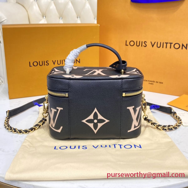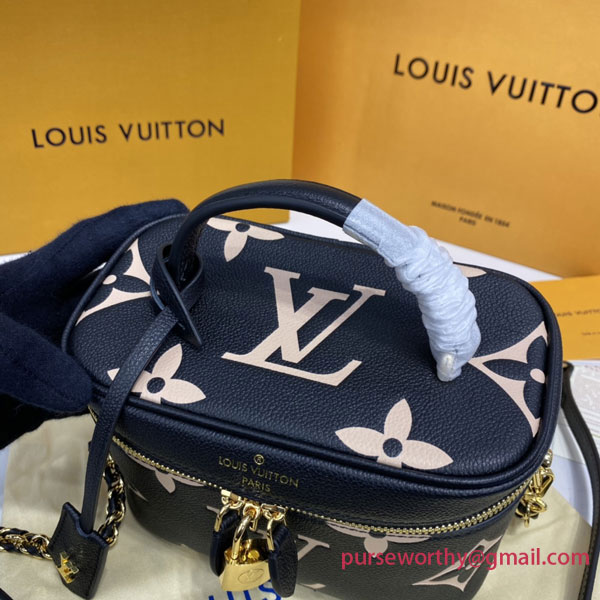 Inspired by the Monogram Nice Vanity, the Vanity PM handbag in Monogram Empreinte leather is a fashionably small bag with a distinctive shape. It is made from grained leather, embossed with the Giant Monogram motif. Its tassel zip pulls, ladylike top handle, and removable strap make it versatile and strikingly stylish.