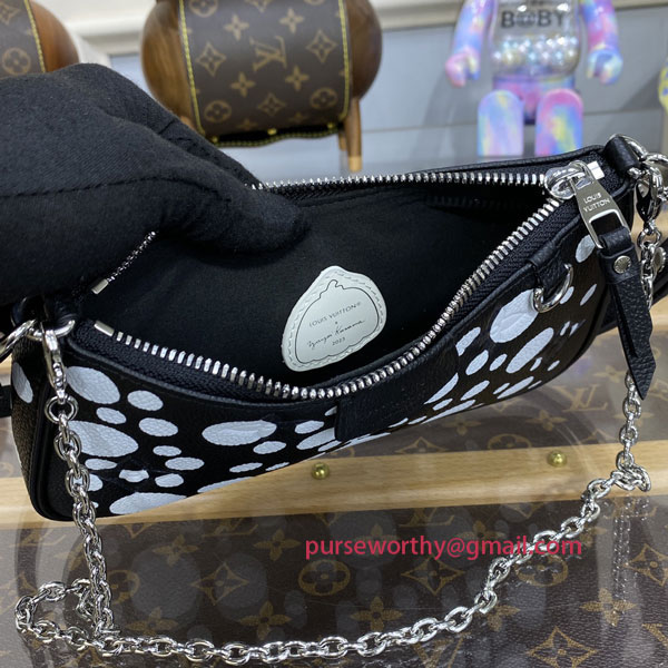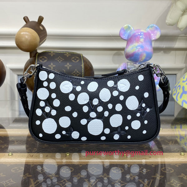 The LVxYK Easy Pouch takes on a high-spirited new look as part of the second major Louis Vuitton x Yayoi Kusama collaboration. The renowned Japanese artist uses arrays of dots in her work as a symbol of infinity. For this version of the Easy Pouch, grained Monogram Empreinte cowhide in elegant black is printed with a constellation of white dots, adding a vibrant creative touch to a practical, stylish bag.