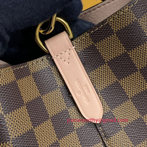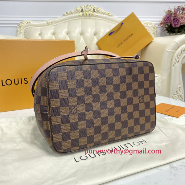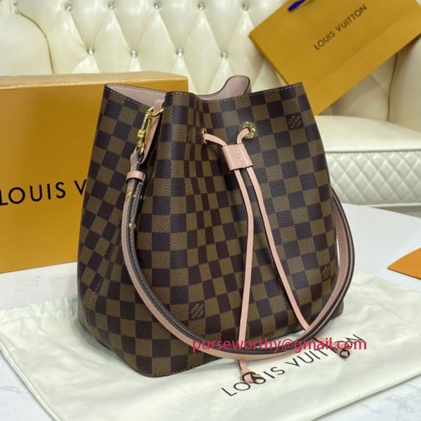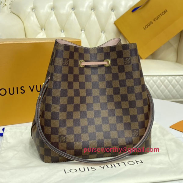 The NéoNoé bucket bag is fashioned from Damier Ebène canvas, accented with colorful details such as its drawstring and matching bonded lining. This lightweight and body-friendly bag can be worn cross-body or over the shoulder with a long or short drop, thanks to its adjustable strap. The inside zipped pocket keeps valuables safe.