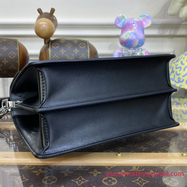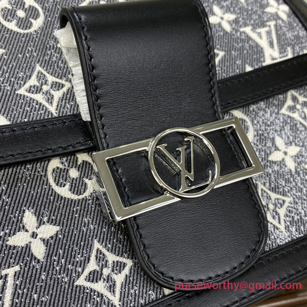 The Dauphine MM handbag is edited this season in gray Monogram Jacquard Denim, a highlight of the Cruise 2023 runway. Black leather trim and an exclusive gothic chain create a sophisticated contrast with the jacquard’s intentionally raw aspect. Fitted with a strap and a chain handle – both removable – the bag is as versatile as it is on-trend.