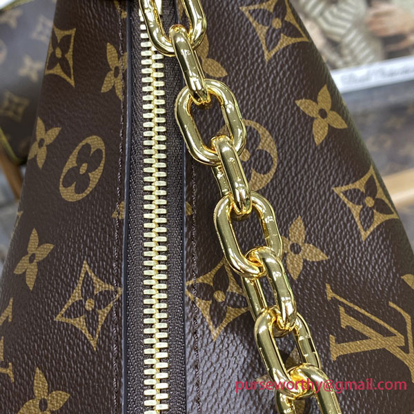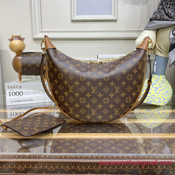 A supple and roomy bag, the Loop Hobo is made from a mix of Monogram and Monogram Reverse coated canvas. Its on-trend half-moon shape is emphasized by the leather corners. A removable chain and removable and adjustable leather strap enable multiple carrying options.