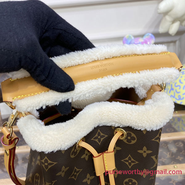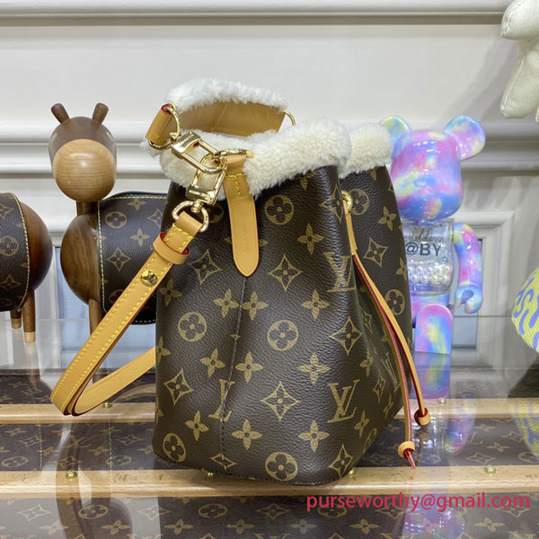 The Cozygram capsule combines iconic Monogram canvas, cream-colored shearling and aged natural leather in an exclusive line of handbags, featuring this covetable NéoNoé BB. One of the Maison’s most iconic models, it looks wintry-fresh with a top handle and border of soft, fluffy fleece. The bag’s long leather strap adjusts for different styling options.