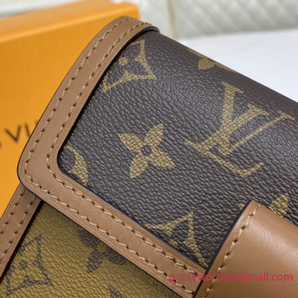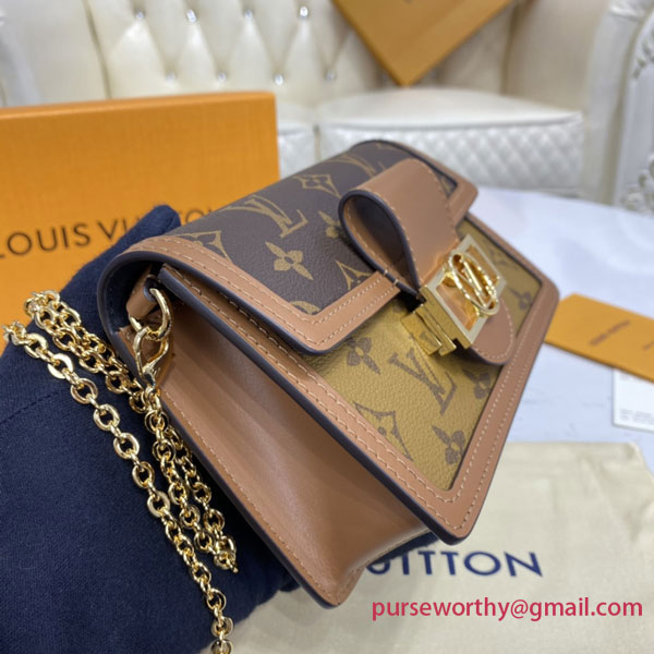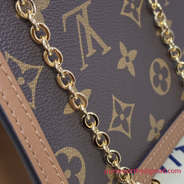 Combining Monogram and Monogram Reverse canvas, the Dauphine Chain Wallet reprises all the signatures of the iconic Dauphine collection: the vintage look, the calf-leather trim and the LV Circle clasp. This neat yet spacious wallet features a removable gold-tone chain, enabling it to be carried in several different ways.