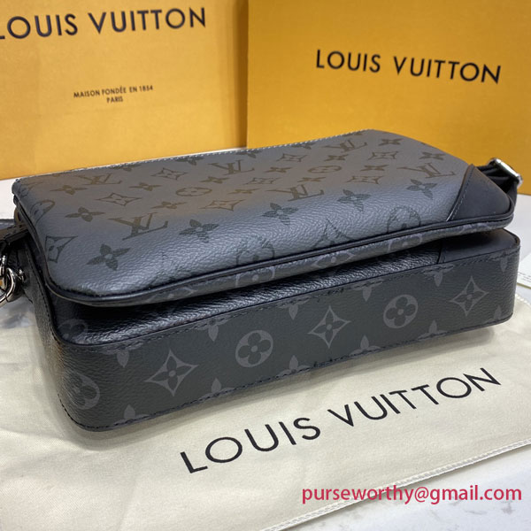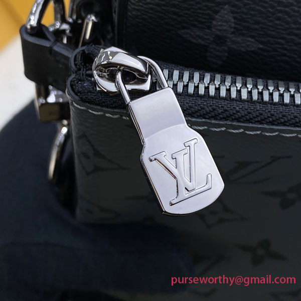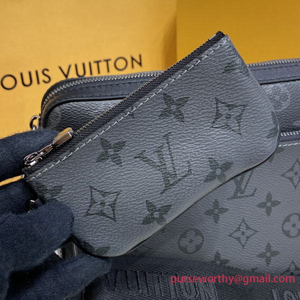 The Trio Messenger bag for men is made from Monogram Eclipse canvas and its mirror twin, Monogram Eclipse Reverse. The iconic motif in tone-on-tone shades of gray complements the lines of this functional hybrid. More than a traditional cross-body bag, it has a removable zipped pocket and a removable coin purse attached to the strap