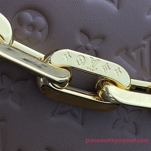 The most eye-catching bag of the Fall-Winter 2021 collection, the Coussin MM handbag is fashioned from puffy lambskin, embossed with a Monogram pattern. Voluminous, soft, and supple, the bag almost feels like a pillow. An adjustable textile strap allows shoulder and a cross-body carry, while the new Edge Chain, enables under-arm and baguette carry.