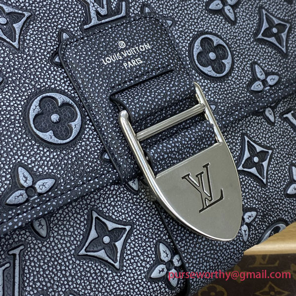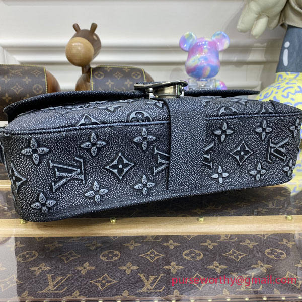 The Archy Messenger MM bag is made from cowhide leather featuring a faded version of the Monogram pattern, printed and debossed into the leather. Reinforced leather corners complete the design. Very supple and body-friendly, it’s comfortable to carry. The adjustable and removable Jacquard strap is signed Louis Vuitton.