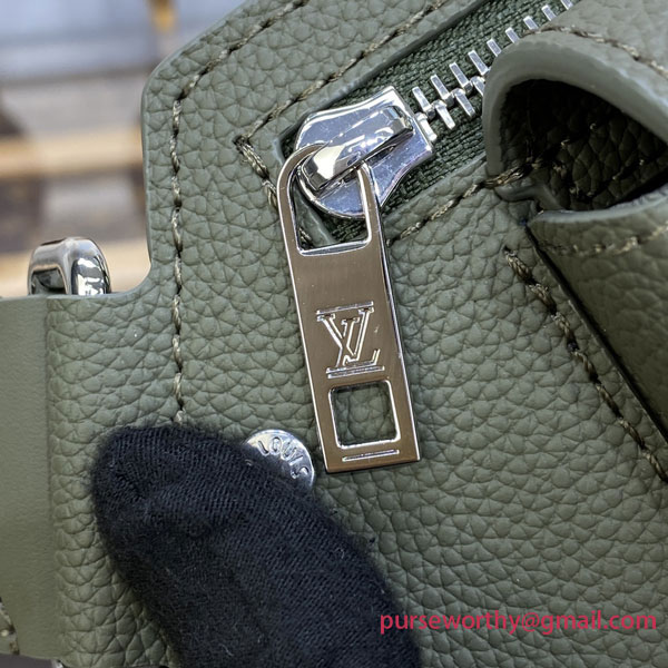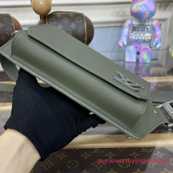 The Louis Vuitton Sling Bag is the on-trend hands-free way to carry everyday necessities. This version is styled in fine-textured LV Aerogram leather, evoking the House’s travel heritage and the early days of airmail with details like the beveled corners on the front flap. The “LV” monogram in matching khaki metal adds a low-key signature.