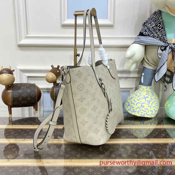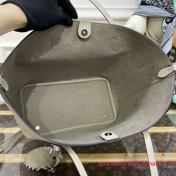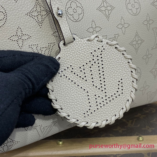 The Blossom MM tote bag is made from Mahina calfskin, with the Monogram pattern delicately perforated into the leather. The supple, lightweight calfskin highlights the draped effect of the design and makes it very body-friendly. It’s signed with a leather tag, featuring perforated LV Initials circled in leather braiding. Two long handles allow shoulder carry.