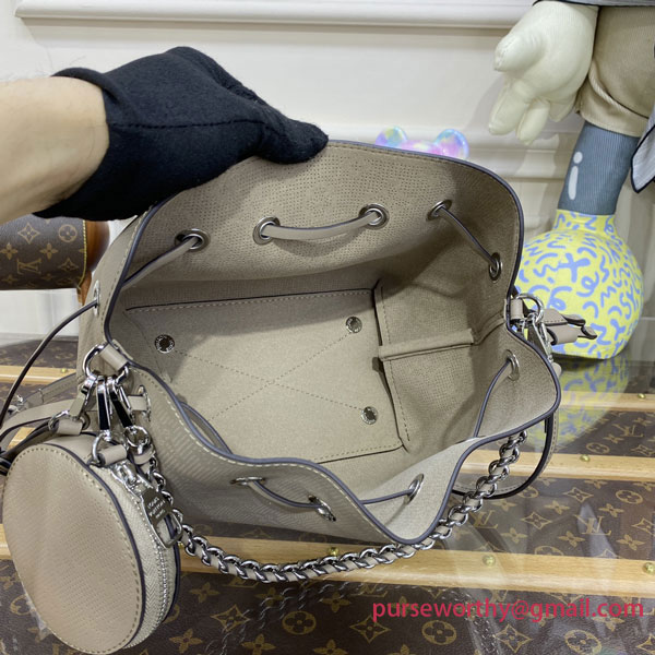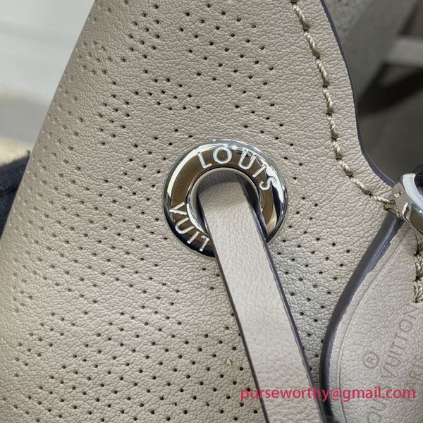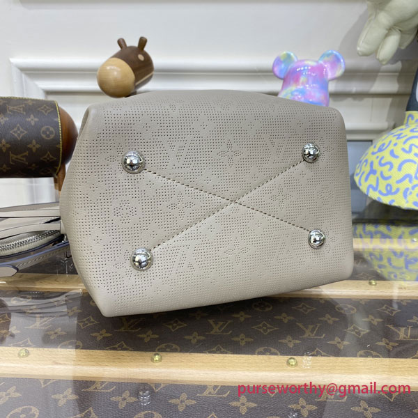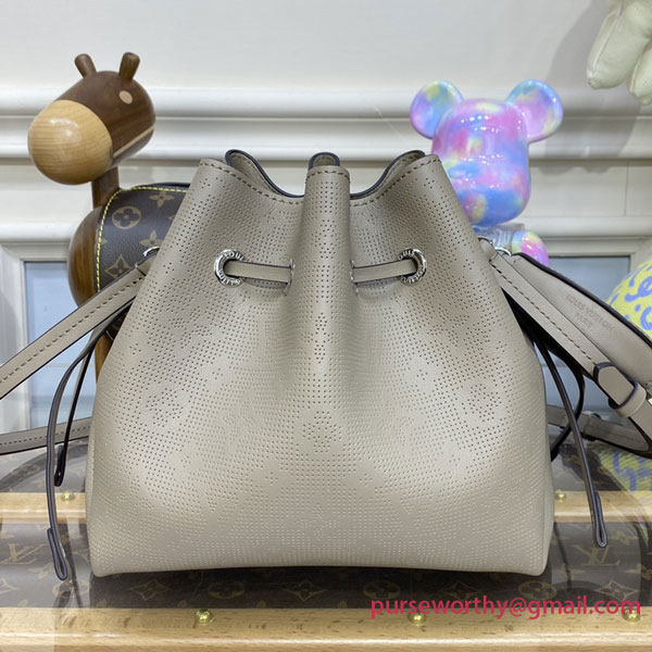 This Bella bucket bag, and its attached coin purse, are made from Mahina calfskin leather in which the LVs and Monogram Flowers are plain and surrounded by more than 60,000 distinct perforations. Tone-on-tone leather trim and silver-color hardware complete the design. There’s a braided handle as well as an adjustable and removable leather shoulder strap.