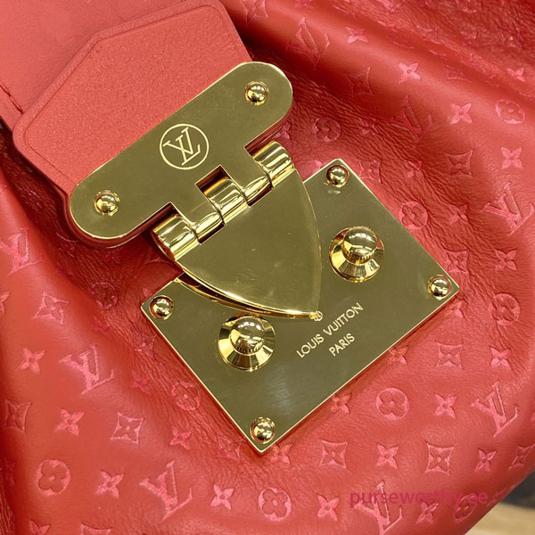 Part of the new Nanogram capsule, the Monogram Clutch is offered in supple calfskin, embossed with a whimisically proportioned Monogram pattern for a subtle two-tone effect. When the rotating handle mounts are tucked inside the bag, they become invisible, turning this bag into an elegant hand-carry purse.