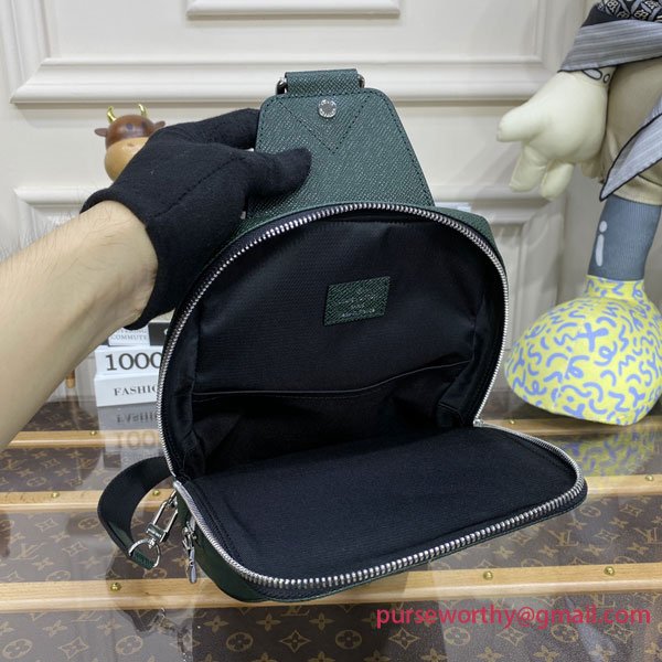 The Avenue Sling Bag in Taiga leather is an elegant option for those looking for a practical everyday bag. It features two zipped compartments to keep essentials organized and an extra-wide strap for shoulder wear that adjusts for left- or right-side carry. It’s signed with metallic tone-on-tone LV initials.