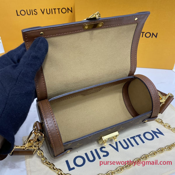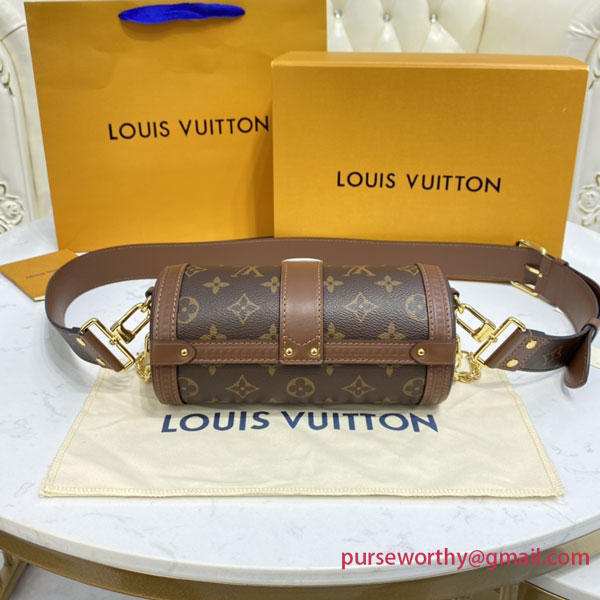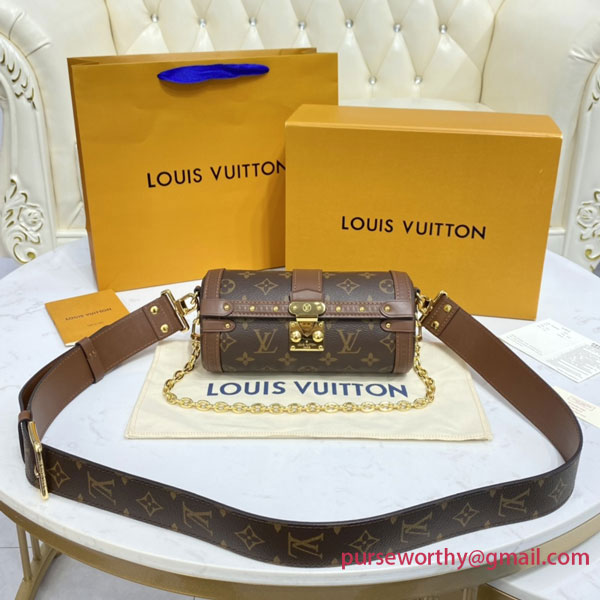 Nicolas Ghesquière introduces a new shape – both feminine and casual – inspired by Louis Vuitton’s archives: the Papillon Trunk handbag. The iconic Papillon duffle bag is transformed into a trendy semi-rigid baguette. The S-Lock, LV-embossed trunk trimmings and studs pay homage to the House’s trunkmaking beginnings.