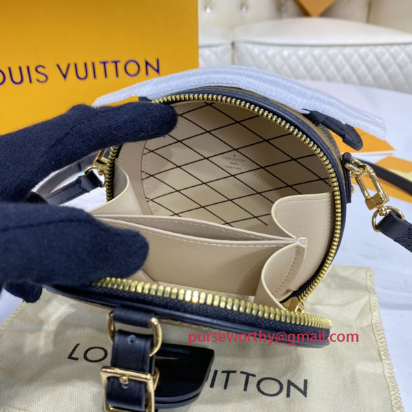Fashioned from Monogram Reverse canvas, the Mini Boîte Chapeau delights with its iconic shape and classic Louis Vuitton details such as the leather name tag and interior malletage quilting. The zip closure reveals a well-organized inside with two large gusseted compartments. It can be worn as a belt bag, carried by the handle, on the shoulder thanks to the removable strap.