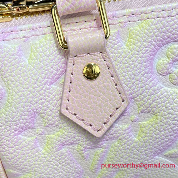 A miniature replica of the iconic Speedy bag, the Nano Speedy is crafted from supple, grained Monogram Empreinte leather. This edition is part of the Summer Stardust collection, for which the leather is specially treated to create a subtle, sparkling effect evoking starry skies. It brings an extra touch of femininity to this model, which has a removable, adjustable shoulder strap for different carry options.