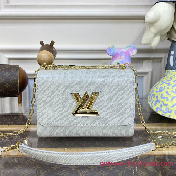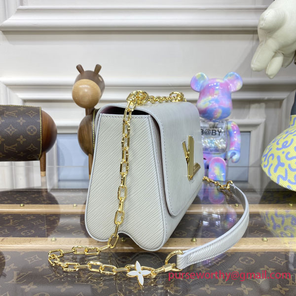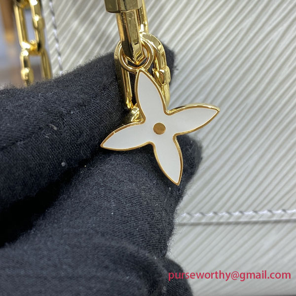Made from grained Epi leather, this Twist MM hand bag has a faceted chain adorned with an enamel Monogram Flower charm. Thanks to discreet LV hooks, the chain offers multiple carry options: hand and elbow, short and long shoulder, or cross-body. The chain It can also be removed, allowing short shoulder carry with its leather strap.