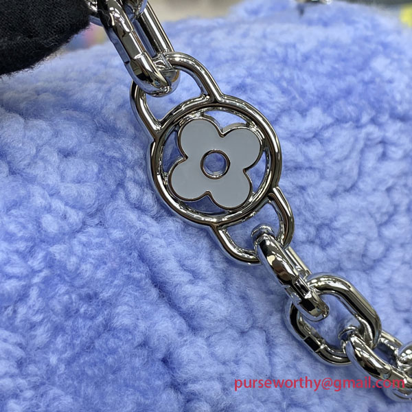 A fresh bright colorway brings an eye-catching aspect to this Twist MM hand bag in shearling. The bag is adorned with a removable silver-color double chain featuring an enamel Monogram Flower charm. The chain and leather strap are both removable to enable multiple attitudes and carry options.