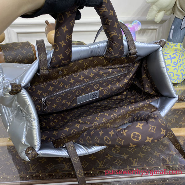 A sporty-chic tote with room for all the essentials: the LV Pillow OnTheGo GM is a stand-out piece for the winter season. Eco-designed using recycled and sustainable materials, it is made from silvery padded nylon, embroidered with Monogram motifs. With padded top handles and two long canvas straps, the bag is easy to wear and comfortable to carry.