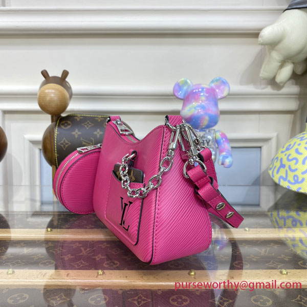 The Marellini handbag shares the sporty-chic signatures of the larger Marelle model, but in a charming mini format. Fashioned from the Maison’s classic Epi leather, this playful and versatile piece features a detachable round coin purse; a small mirror fits into the front pocket, hooked to the bag by a stylish silver-finish chain.
