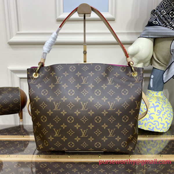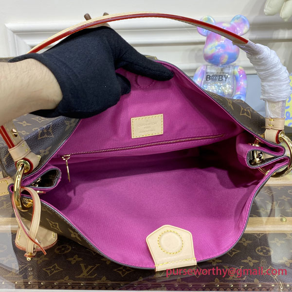 The Graceful PM hobo in classic Monogram canvas is a lightweight, roomy bag to carry every day. Natural cowhide leather detailing and golden hardware add a refined touch. The body-friendly design combines with a supple, flat handle for stylish and comfortable over-the-shoulder wear. The magnetic closure and zipped inside pocket keep belongings secure.