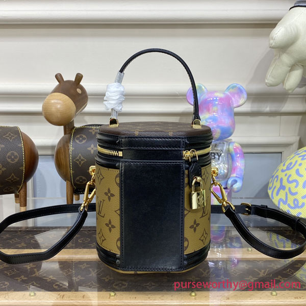 Featuring the historical shape of the LV Cannes beauty case, designer Nicolas Ghesquière revives a long-standing classic with the Cannes handbag. Petite in size and presented in a mix of Monogram and Monogram reverse coated canvas, the elegant piece reanimates a traditional silhouette steeped in Louis Vuitton heritage. A removable leather strap and top handle provide a range of carrying options.