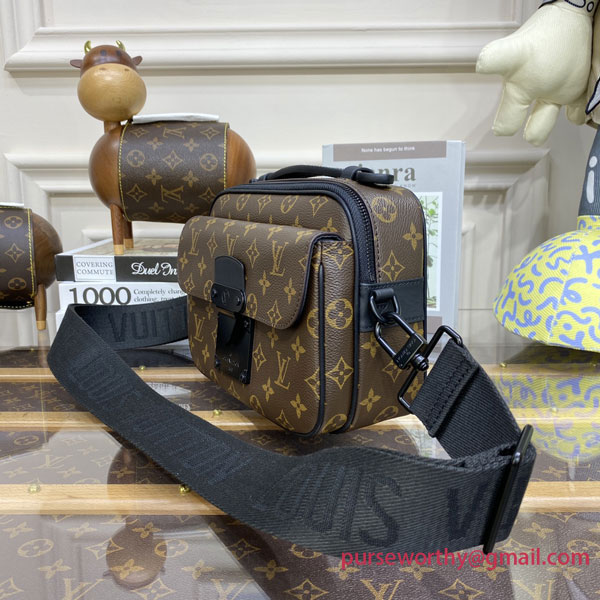 The S Lock Messenger in Monogram Macassar canvas comes with an exclusive new closure inspired by a trunk lock invented by Georges Vuitton in 1886. A special finishing process gives the magnetic metal clasp a bold ultra-modern look. Additional features like the roomy zipped compartment, trunk-style leather handle and LV signature strap make this a stylish, user-friendly bag.