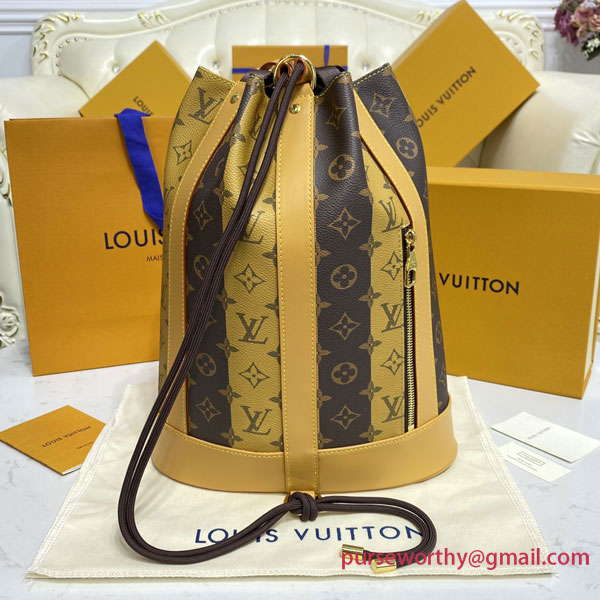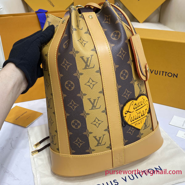 Inspired by the House’s Sac Marin from 1927, Virgil Abloh and Japanese streetwear designer Nigo team up to create the Randonnée Messenger bag in Monogram Stripes canvas. The bag is fashioned from a reimagining of the iconic Monogram canvas in which the LVs and Monogram Flowers appear on two-tone brown canvas.