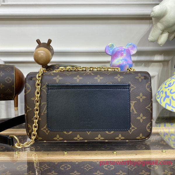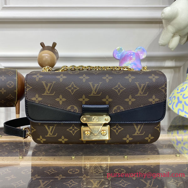 For Spring 2022, Louis Vuitton launches the feminine Marceau chain handbag. Inspired by the design of the Pochette Metis, it’s a compact bag with plenty of storage, that closes with a S-lock, reminiscent of those on the House’s heritage trunks. The gold-color sliding chain has a leather shoulder pad for more comfort.