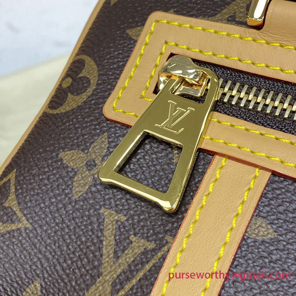 Inspired by the rectangular Cité bag from the House's archives, the Cité handbag is made from Monogram canvas and features two long top handles, that can be easily worn on the shoulder thanks to the bag’s supple design. Leather side bands, a front zipped pocket, and an oversized zip pull give youthful allure to the bag.