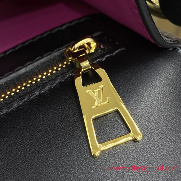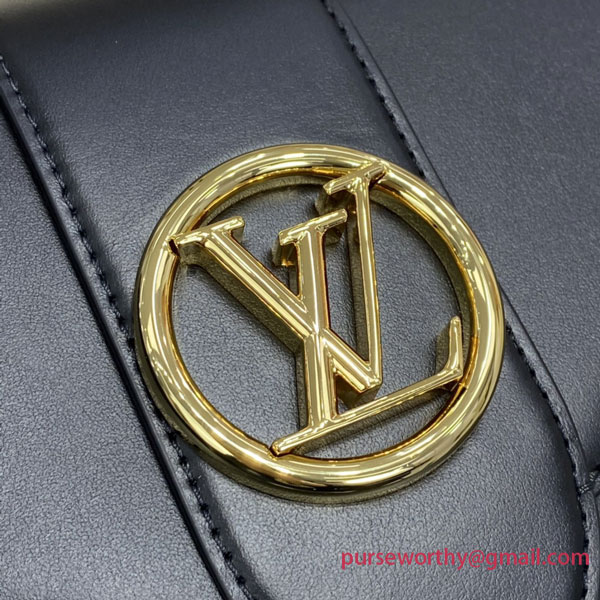 The structured yet curved lines of the LV Pont 9 handbag are fashioned from smooth leather. The LV Circle, a classic House signature reinterpreted by Nicolas Ghesquière, adorns the bag’s flap and the adjustable strap’s buckle. Hidden features such as a colored leather lining and Monogram Flower magnetic closure on the flap’s underside bring subtle sophistication.