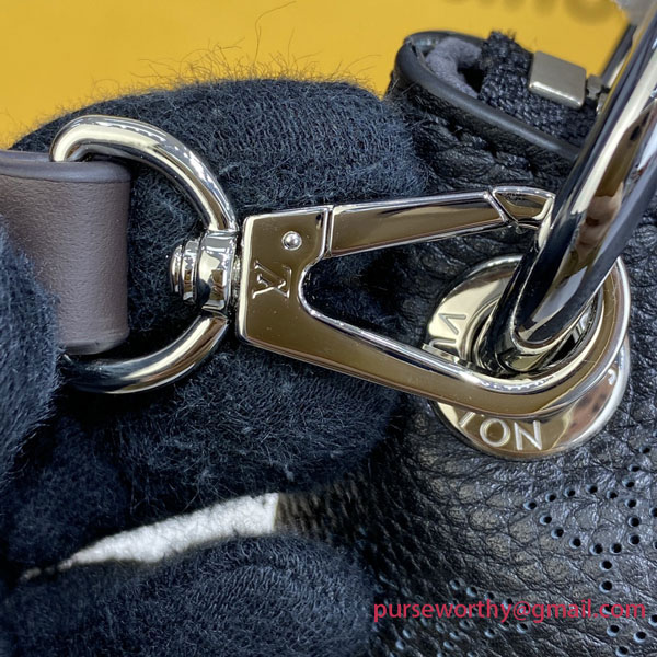 The Beaubourg Hobo MM bag is made from Mahina calf leather perforated with the Monogram pattern. It boasts a stylishly braided-leather top handle, with hand-painted edge-dyeing along the braids. The leather zip pulls and large LV charm sign the bag. A detachable, wide leather strap means that this supple bag feels comfortable against the body.