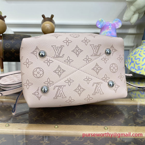 Louis Vuitton unveils the Bella bucket bag in Mahina calf leather with its perforated Monogram pattern. The bag’s small size and the attached round coin purse, featuring a miniature version of the perforated Monogram motif on one side, make it modern, desirable and trendy. The sophisticated leather and metal mixed handle associated with a removable leather strap bring versatility.