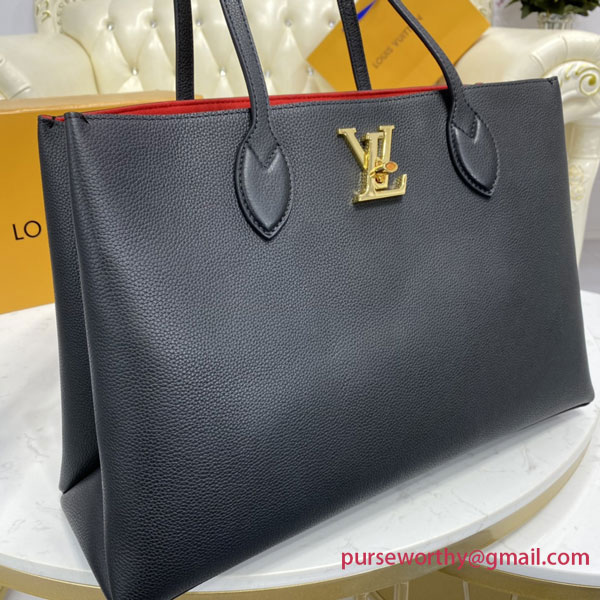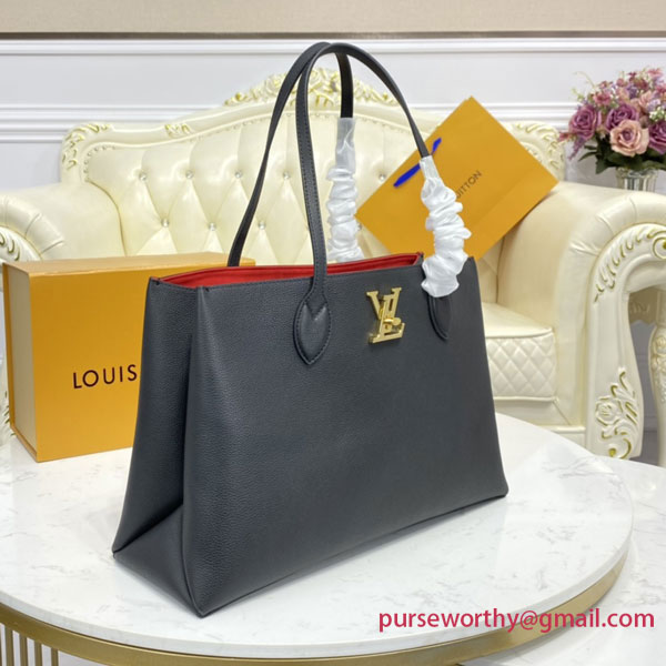 Comfortable to carry thanks to its two long leather straps, the Lockme Shopper handbag in supple calf leather is instantly recognizable by its iconic LV turn lock, which secures the closure. Rounded and folded gussets give the bag a feminine feel and make it roomy enough to hold everyday essentials, including A4 files.